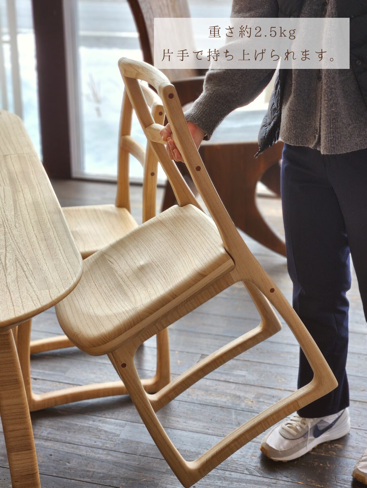 また、重さは約2.5kgと桐子モダンのチェアの中でも一番軽量。