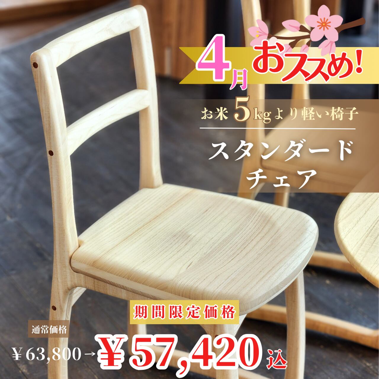 4月は、総桐製のやさしいリビング・ダイニングチェア。